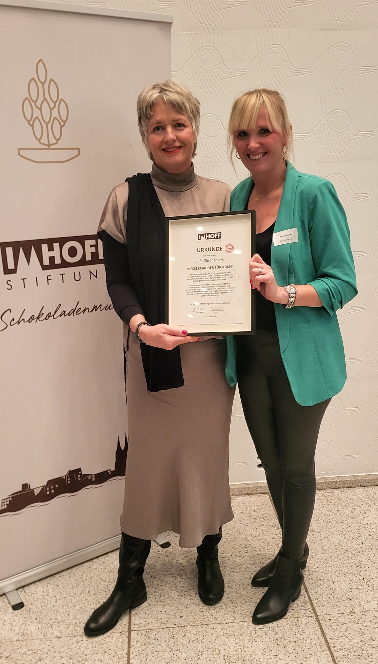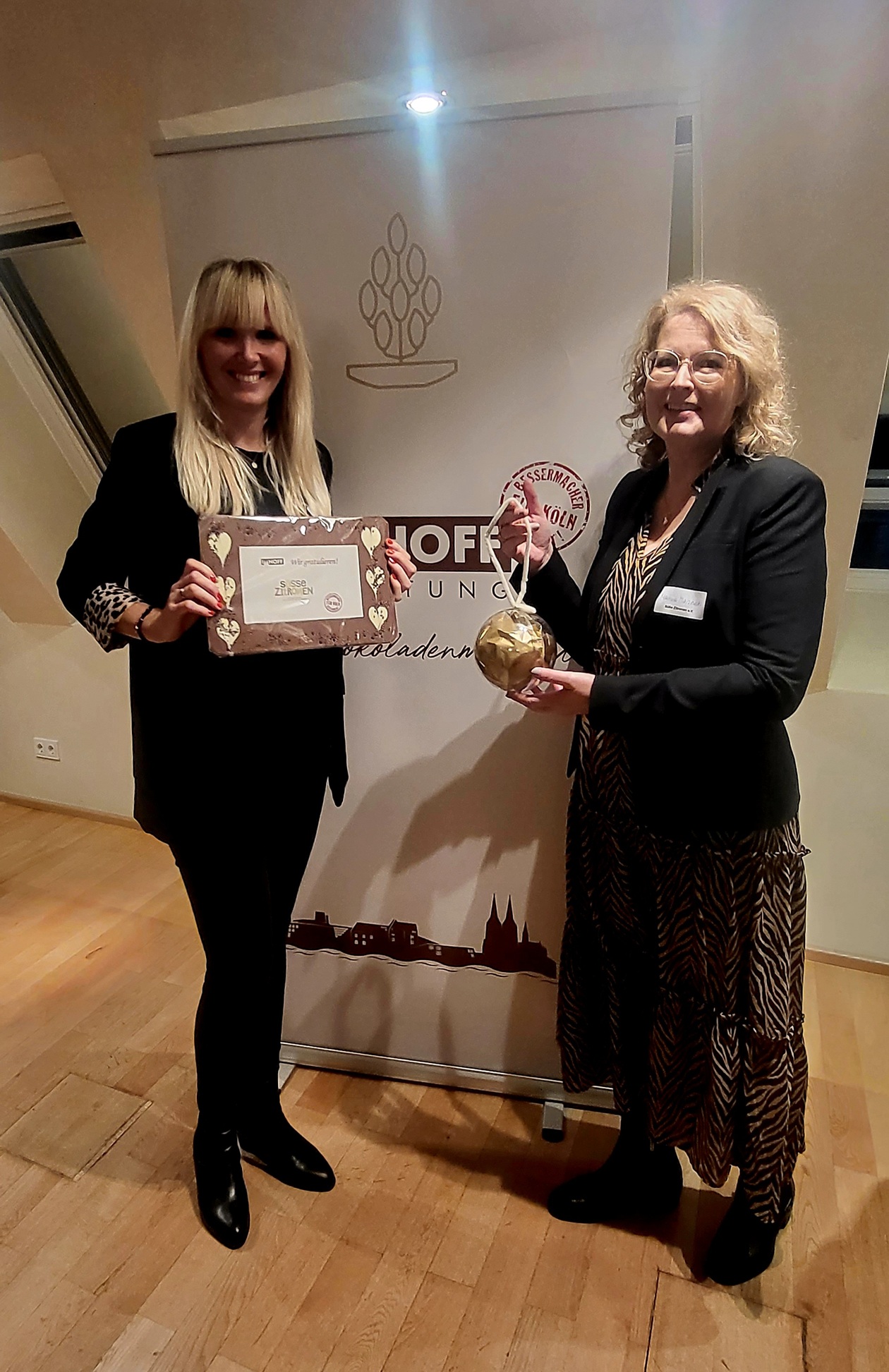 Steffi und Martina bei der Ehrung der Vereine am 30.11.2025 in der BelEtage des Schokoladenmuseums
